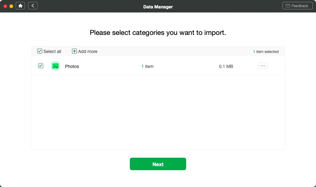 步驟3。然後,您需要選擇要傳輸的數據類型。然後單擊下一個按鈕開始。