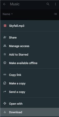 步驟6。點擊要轉移到Android設備的音樂文件,然後點擊三點菜單圖標,然後選擇“下載”選項。