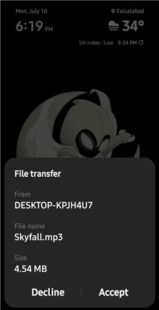 步驟4。在您的Android設備上,將發生通知,要求您接受傳入的藍牙轉移。點擊“接受”或“確定”進行。