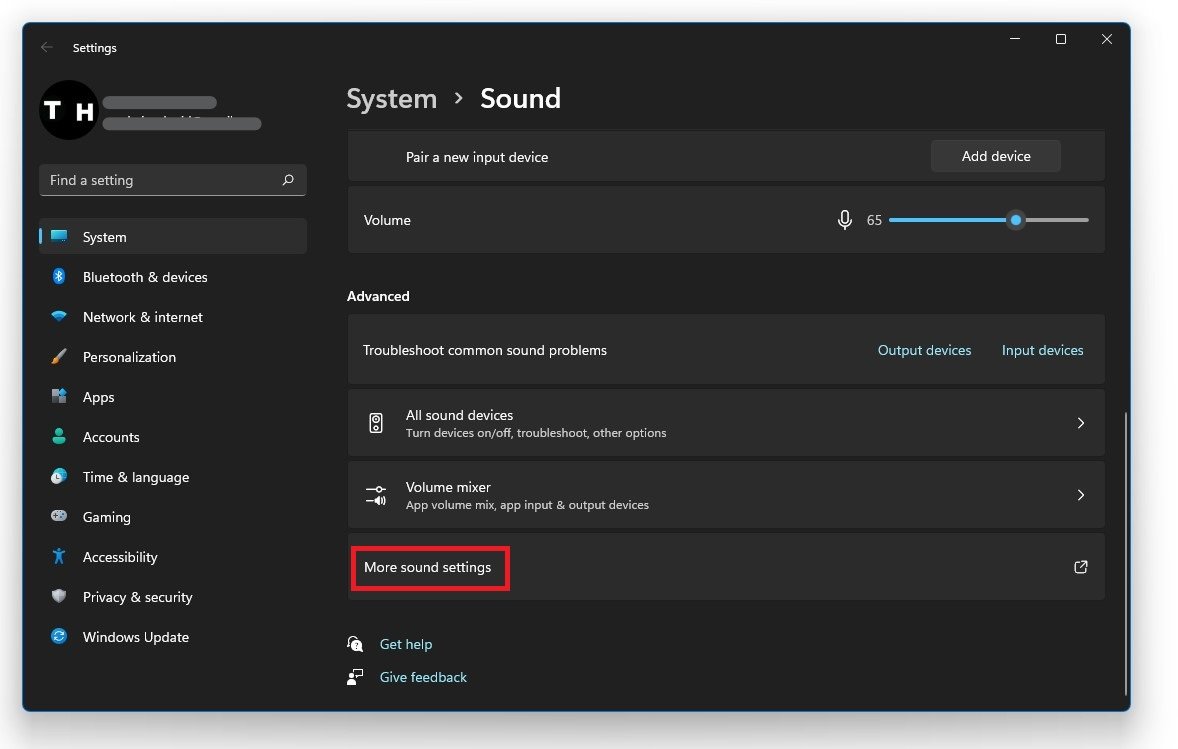 單擊任務欄中的齒輪圖標即可打開設置,或者打開開始菜單並蒐索設定。窗戶上、下面系統, 選擇聲音。