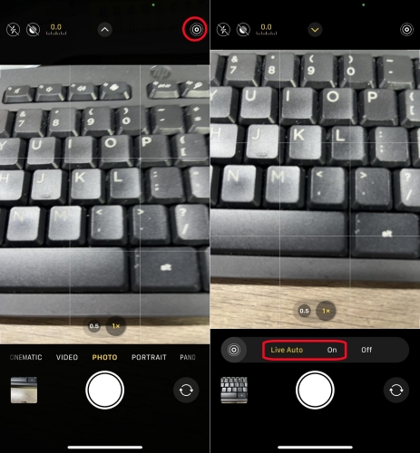 步驟2。點擊現場照片相機屏幕頂部的按鈕可打開實時照片。
