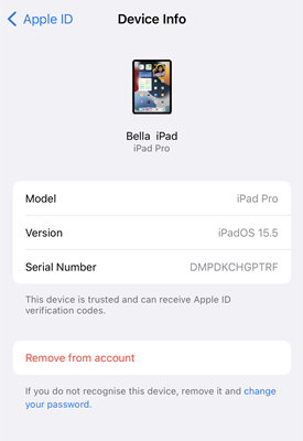 步驟2。找到並點按您的 iPad,然後點按“從帳戶中刪除”。