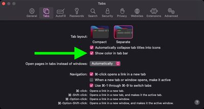 著色背後的想法是,它允許瀏覽器界面淡入背景並創造更身臨其境的體驗。然而,效果並不總是看起來很好,尤其是當您的桌面上排列了多個窗口時。令人高興的是,蘋果選擇提供一個關閉它的選項。