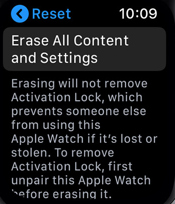 - 在接下來的屏幕上,您將看到一個選項,顯示“擦除 Apple Watch 內容和設置”。