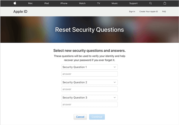 - 選擇新的安全問題和答案,然後選擇“繼續”。