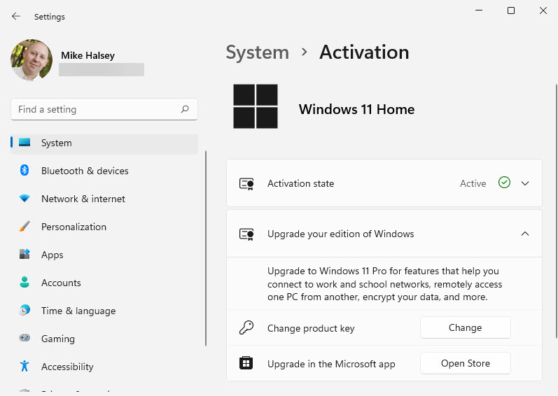 要將Windows 11 Home版本的版本升級到Windows 11 Pro,在設置中,將其導航到系統,然後瀏覽並最終進行產品密鑰和激活。如果您已經有Windows 10 Pro的產品密鑰,則可以在此處輸入。否則,在升級您的Windows選項版本中,單擊“打開存儲”按鈕。