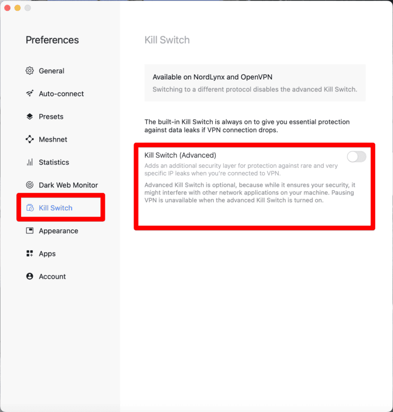 - 前往設定>終止開關,然後打開“終止開關(高級)”。