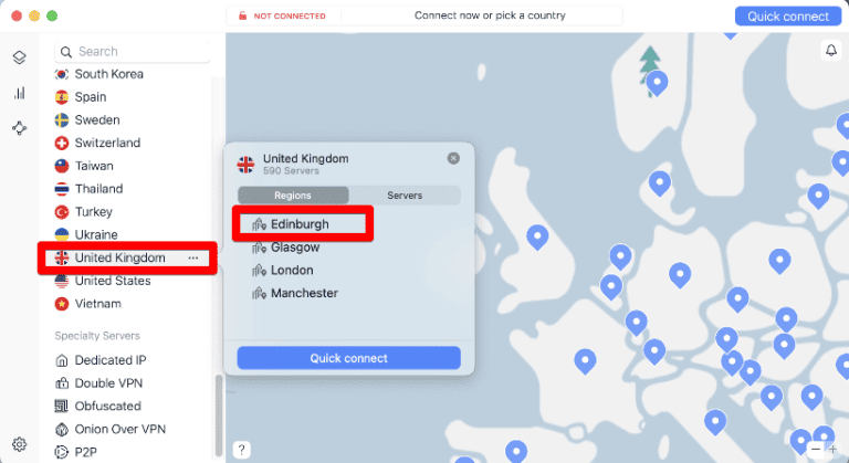- 連接到 Bet365 未被阻止的服務器位置。我推薦英國 – 愛丁堡服務器以獲得最佳體驗。