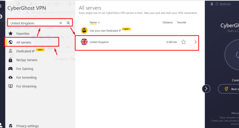 - 或者,選擇“所有服務器,”然後搜索首選國家。例如,我選擇英國服務器在 BBC iPlayer 上觀看《牆中的女人》等電影/電視劇。