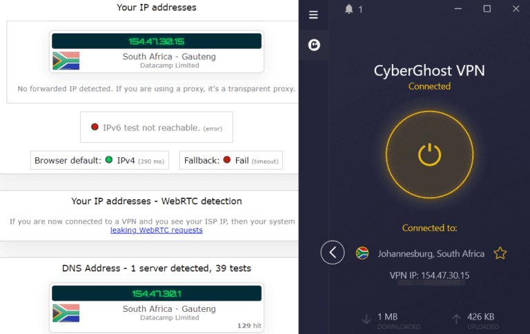 - 按照上面的步驟 1-4 進行操作。所以,獲取 CyberGhost(搶這些折扣),啟動 VPN,並啟用終止開關。