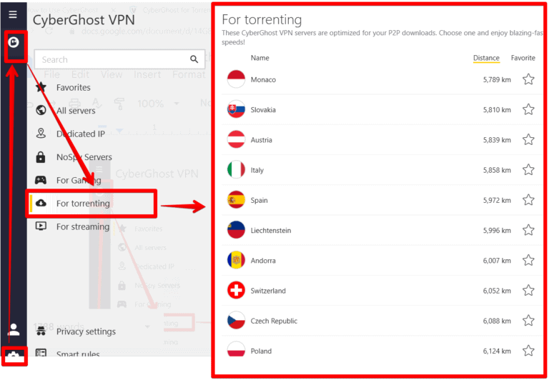 您可以在打開 Deluge torrent 客戶端之前調整 PC 上的相關 VPN 設置並連接到首選服務器,從而將 CyberGhost 與 Deluge 結合使用。