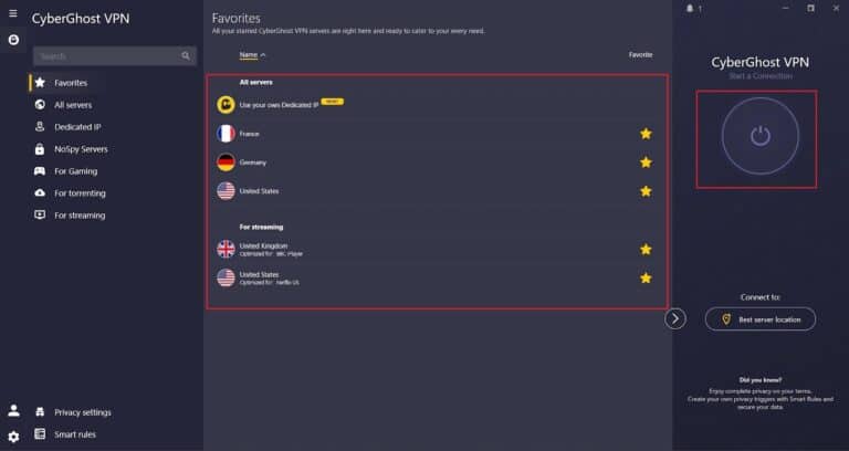 如前所述,CyberGhost 還提供專用流媒體服務器為了Netflix 等平台。與常規服務器相比,這些服務器提供更快的速度、更低的延遲和更好的穩定性,使其非常適合 Discord Netflix 觀看聚會和服務器狂歡。