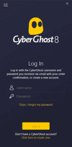 - 啟動 CyberGhost 並登錄與您的帳戶憑據。