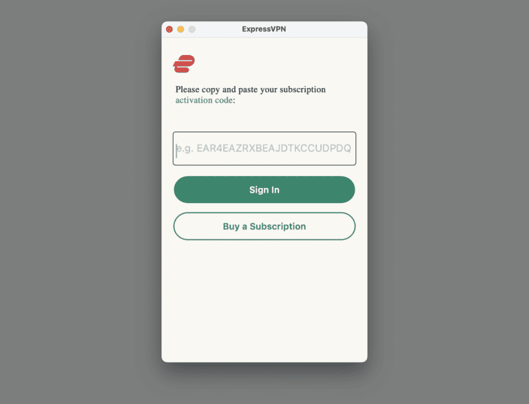 - 啟動ExpressVPN並使用您的電子郵件和密碼或一個激活代碼訂閱服務時,您會通過郵件收到。