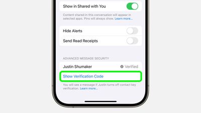 為了獲得更高級別的安全性,您和您的聯繫人可以在“消息”中生成驗證碼,然後在“通訊錄”中保存彼此的公共驗證碼。當您想要同時驗證對方,或者您收到的公共驗證碼與您的聯繫人與您共享的公共驗證碼不匹配時,此功能非常有用。