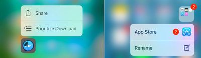 如果您同時下載或更新多個應用程序,則用力按下其中一個應用程序即可讓您選擇優先下載該應用程序。請注意此處顯示的共享選項 - 這顯示為您用力按下的任何第三方應用程序圖標的默認選項。