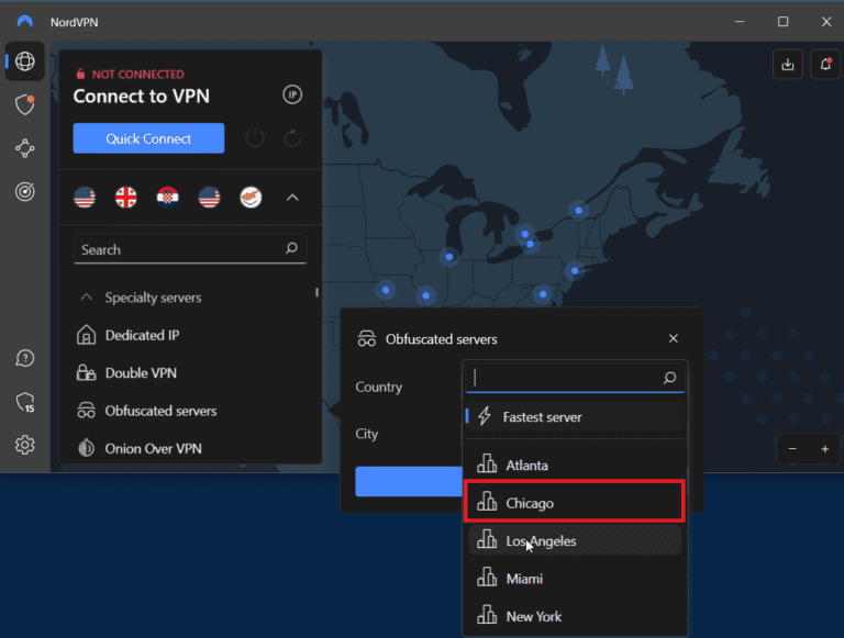 - 為您的混淆服務器選擇一個國家/地區。我將選擇美國作為示例。