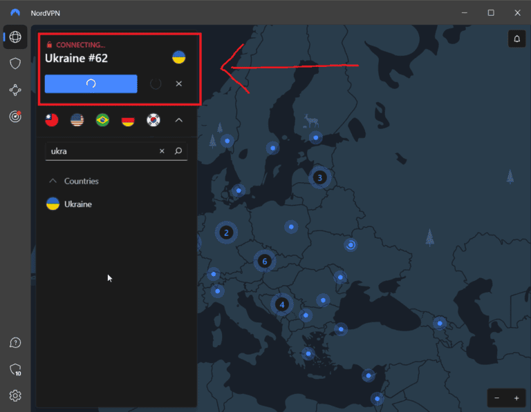 - 等待連接確認。這就是 NordVPN 從“正在連接” 到一個“已連接“ 地位。