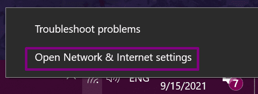 - 下一個,右鍵單擊你的無線網絡在你的工作列並選擇“打開網絡和 Internet 設置”。