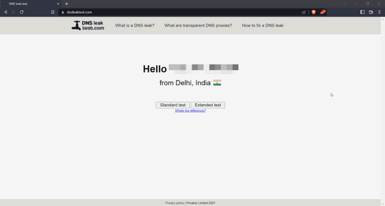 - 訪問www.dnsleaktest.com使用主瀏覽器。如果可見IP地址是你真實的地址,那麼分割隧道就可以正常工作。