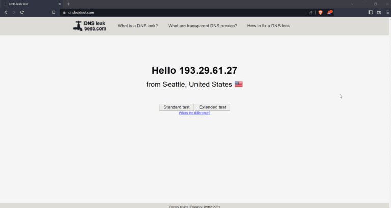 - 可選:至交叉檢查,這次啟用主瀏覽器的 VPN 連接並重新運行DNS洩漏測試。如果 IP 地址出來的效果不同,那麼特徵完美運行。