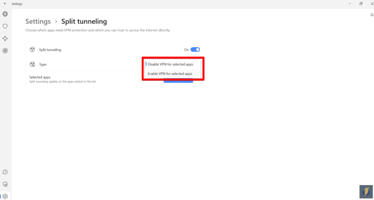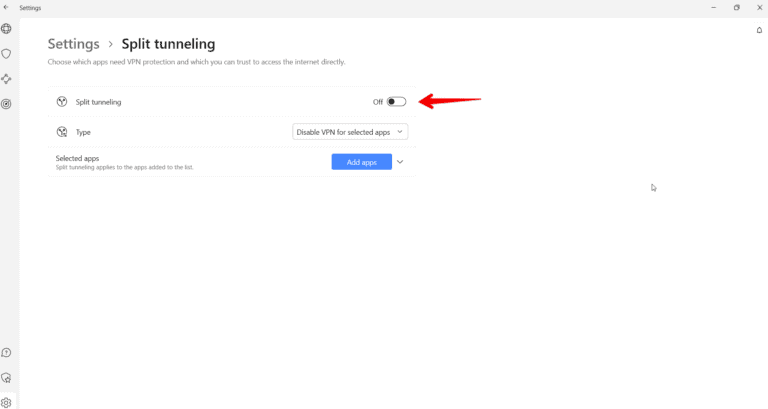- 單擊“分裂隧道”選項來禁用所選網站的 VPN。