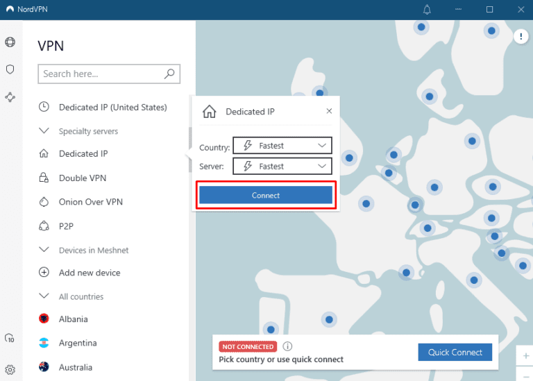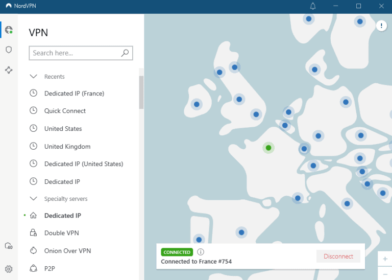 NordVPN 在 7 個國家/地區提供專用 IP 地址 –德國,法國,荷蘭,日本,加拿大,英國, 和美國。