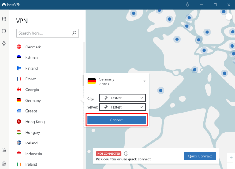 使用 NordVPN 連接到 OmeTV 非常簡單安裝VPN和連接到您的目標服務器位置。