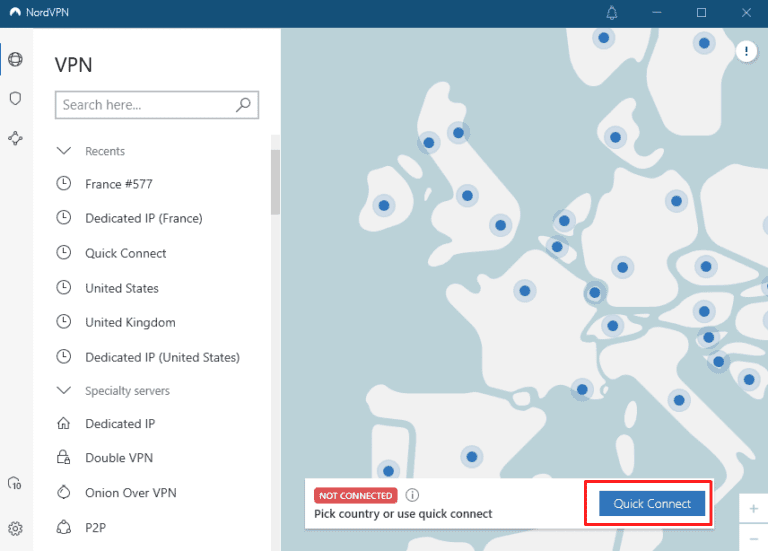 單擊“快速連接”按鈕將您連接到您所在位置最好的 NordVPN 服務器。