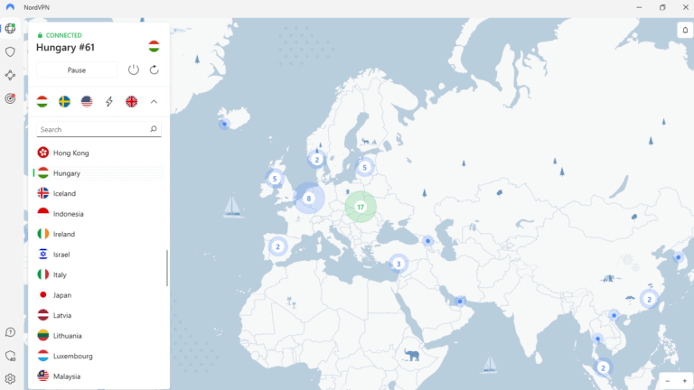 - 連接到 NordVPN 服務器。您可以選擇離您最近的服務器以獲得更快的速度。