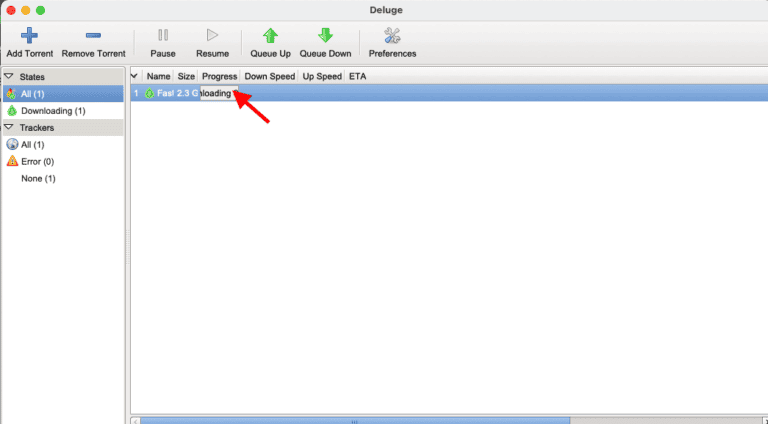 - 重新啟動您的 Deluge 應用程序。然後,選擇要下載的 torrent,並監控進度。
