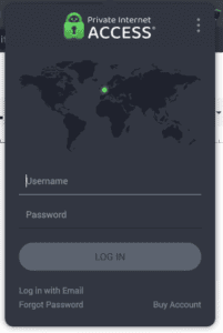 - 啟動 PIA 應用程序並登錄與您的帳戶信息。