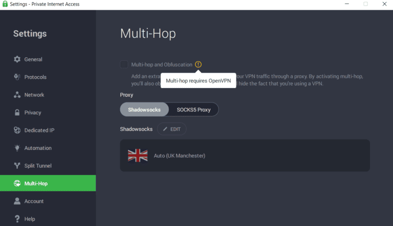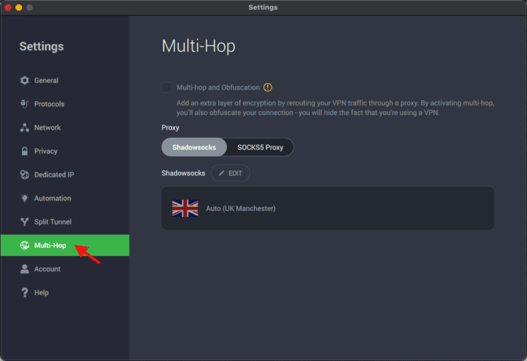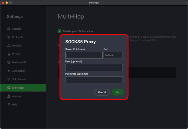 - 檢查“多跳和混淆”框使您能夠切換代理部分。