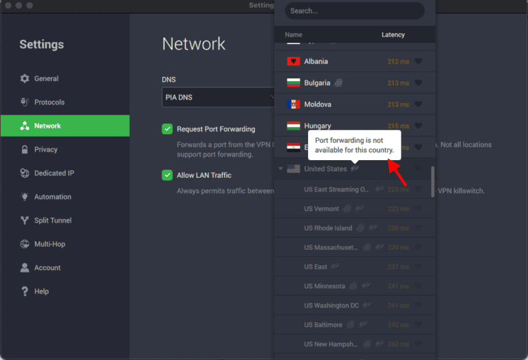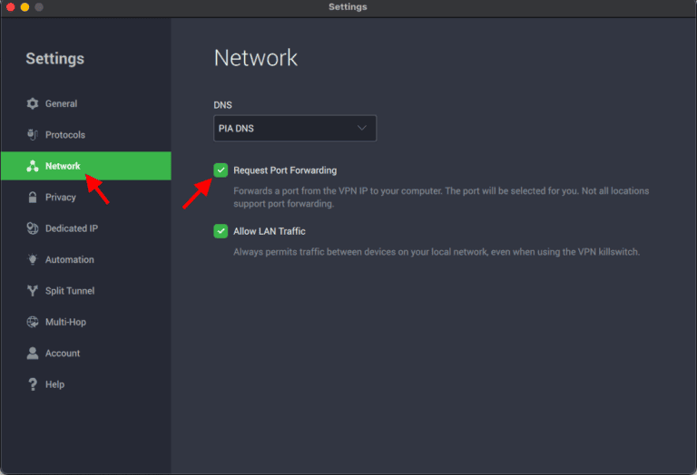 Private Internet Access (PIA) 在啟用 P2P 的 VPN 服務器上提供端口轉發。