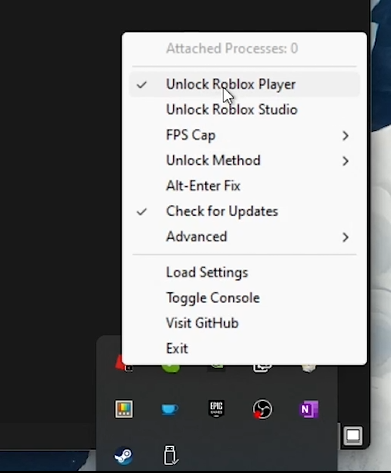 系統托盤訪問:在系統托盤中找到FPS解鎖圖標。右鍵單擊以訪問帶有設置的菜單。