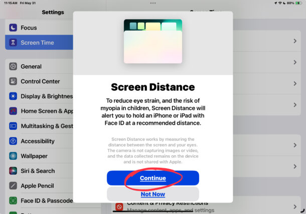 屏幕距離是 iPhone 和 iPad 上一項鮮為人知的健康功能,旨在幫助用戶與顯示器保持健康的距離。從理論上講,屏幕距離可以幫助減少近視和眼睛疲勞,即使該功能不適合您和您的設備,您可能會發現它對於家庭成員的 iPad 或 iPhone 很有價值。許多家長可能會發現,如果孩子喜歡使用 iPhone 或 iPad,並且經常將其放在離眼睛太近的地方,“屏幕距離”會特別有用。