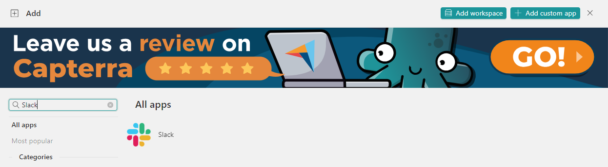 要將Slack應用程序添加到Rambox中,您只需要遵循三個簡單的步驟: