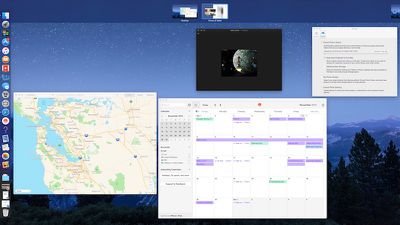 您還可以使用任務控制啟用分割視圖。當一個應用程序處於全屏狀態時,通過在 MacBook 或 Apple 鍵盤上按 F3 或在啟用了手勢的觸控板上用四根手指向上滑動來激活任務控制。當所有打開的應用程序出現在屏幕上時,選擇您想要添加到拆分視圖的應用程序,並將其拖動到屏幕頂部先前全屏應用程序旁邊的多任務托盤。任務控制還可以以相同的方式將一個應用程序替換為另一個應用程序。