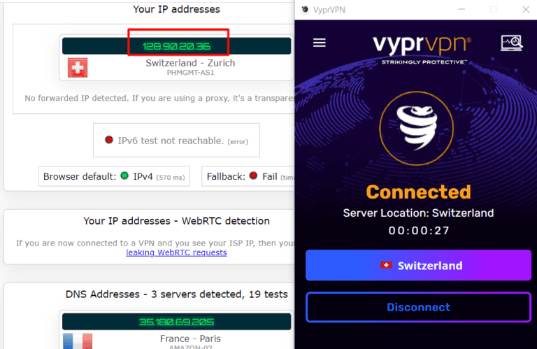- 測試IP/DNS洩漏確保您連接到所選服務器位置中的VPN分配的IP地址。