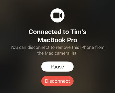 您可以隨時使用以下命令暫停連續性相機暫停iPhone 顯示屏上的按鈕。完成後,只需點擊紅色斷開iPhone 屏幕上的按鈕。