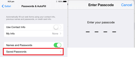2. 單擊“已保存的密碼”> 如果您的設備有密碼,則需要輸入該密碼。