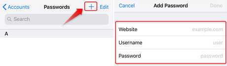 - 查看保存的 Safari 密碼並點擊“+(加號)”符號。