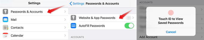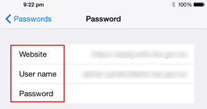 之後,您將看到 iPhone 上 Safari 中保存的密碼列表。點擊其中任何一個,您將能夠洩露其密碼。