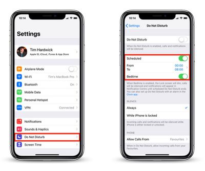 - 確保預定和就寢時間按鈕已打開,因此它們都是綠色的。