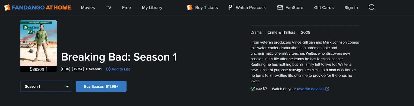 Fandango在家為您提供便宜的價格,以購買高清質量的Breaking Bad。