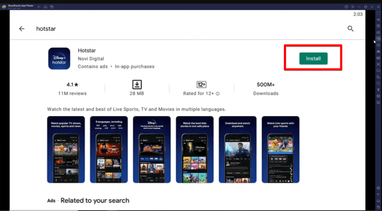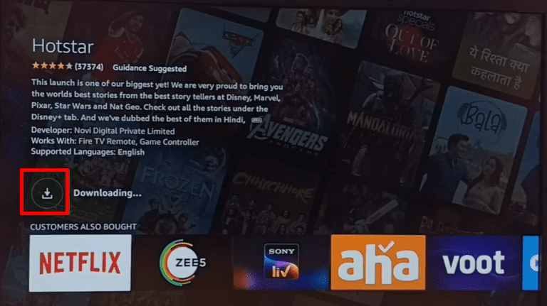 - 點擊安裝按鈕下載 Hotstar 應用程序。