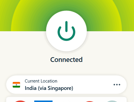 - 啟動VPN應用程序,登入,並連接到印度服務器。