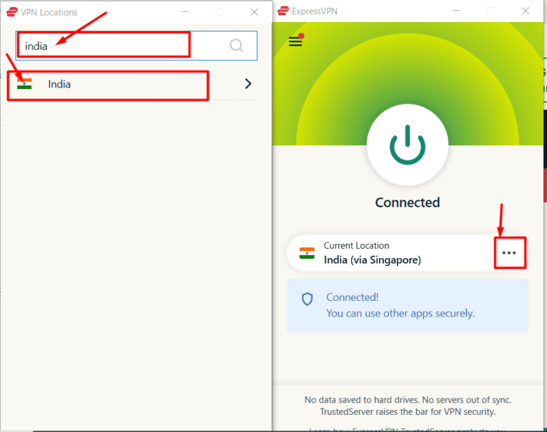 - 相關服務器:ExpressVPN擁有廣泛的庫94 個地點的 3000 多台服務器。但我們對可靠的印度服務器感興趣,它可以解鎖 Atrangi Re、Cash、Bro Daddy 和其他 Hotstar 獨家節目。
