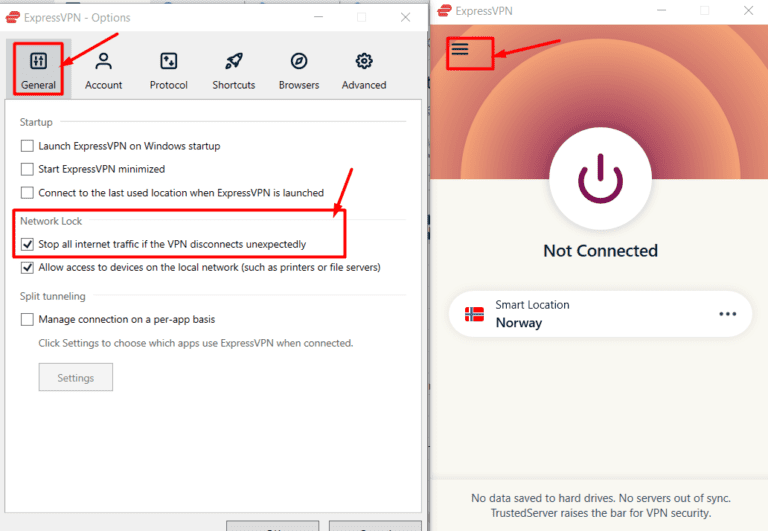 - 啟用終止開關。單擊漢堡菜單圖標,然後選項>一般的。然後,切換“網絡鎖”。