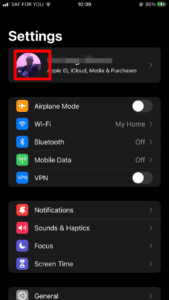 - 轉到“設定” 在您的 iPhone/iPad 設備上,然後單擊您的個人資料。